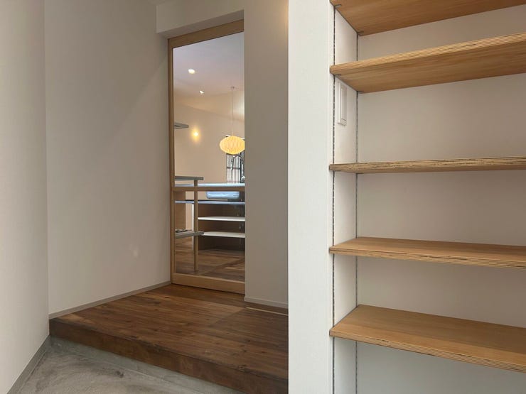 防府市新田にある中古住宅。令和7年8月にフルリノベーション済み!小学校や郵便局、スーパーも近く暮らしに便利な場所にあります。そして収納スペースの強い味方「可動棚」がパントリーや洗面室に設置してあるのが嬉しいです♪
