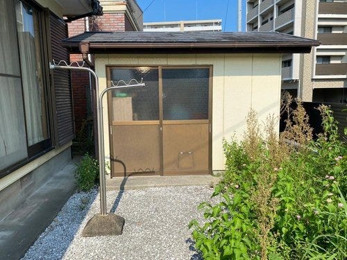 木造倉庫(約5.41平米)があり、荷物の保管に便利です。