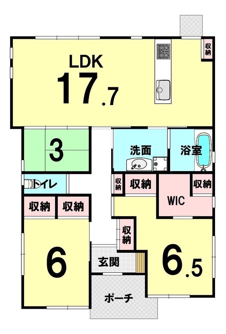 ・LDK17.7帖+タタミスペース3帖で広々20.7帖!