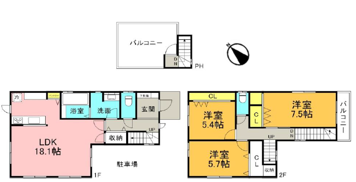 | 建物面積 | 93.1㎡ | 駐車場 | あり 普通:1台 |