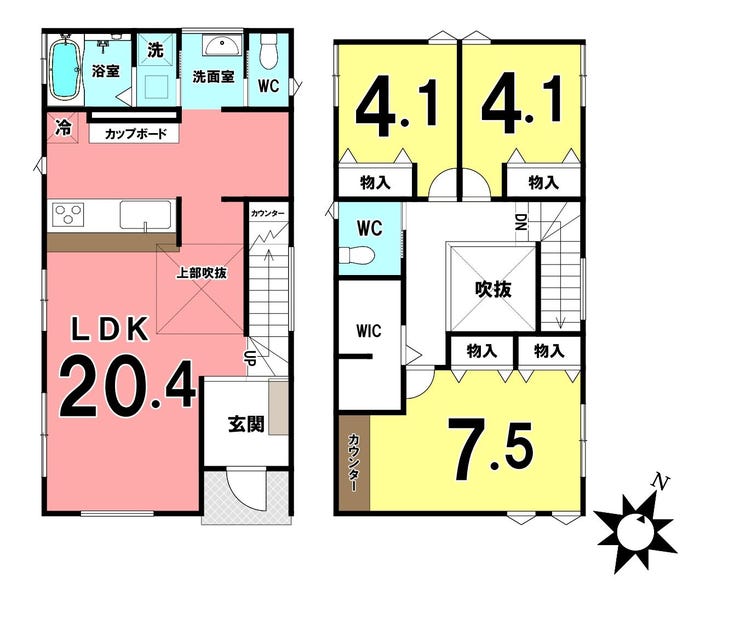 ■WIC完備、リビング階段、水回りがまとまった間取りで家事もしやすいです。