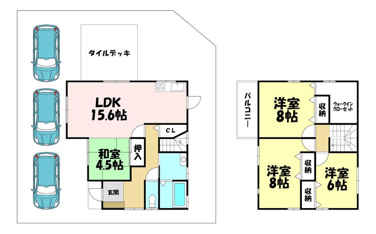 駐車スペースは3台分確保されており、ご家族それぞれがお車をお持ちのご家庭や来客時にも安心です。