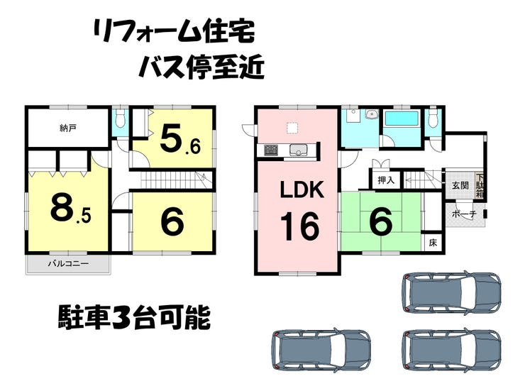 ■駐車3台可能なリフォーム住宅 ■角地 ■バス停徒歩約1分
