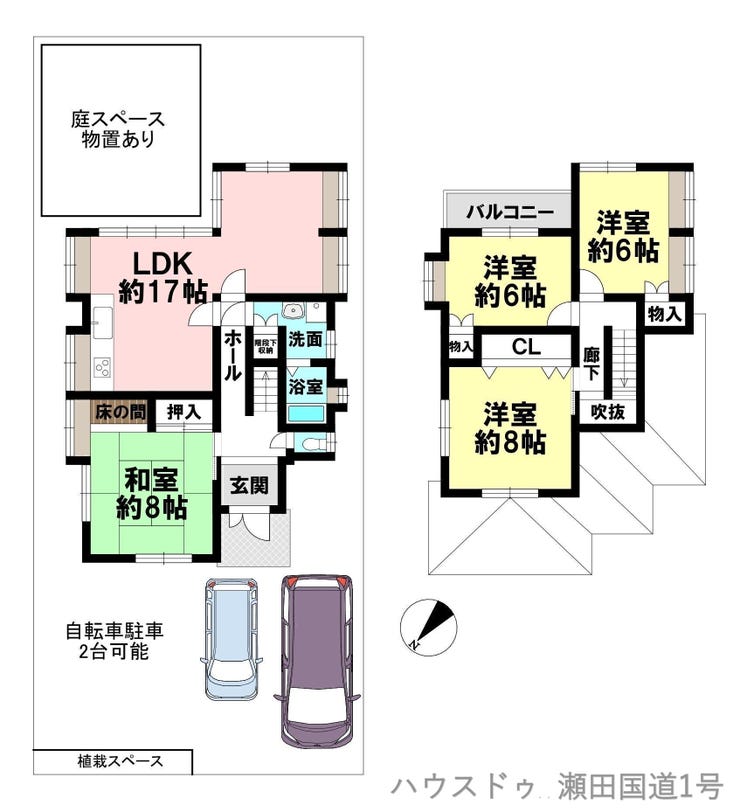 | 建物面積 | 104.48㎡ | 駐車場 | あり 普通:1台 軽:1台 |