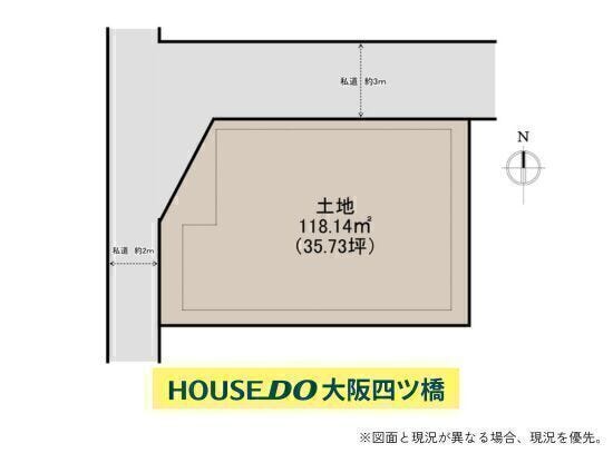 | 土地面積 | 公118.14㎡(35.73坪) | 接道 | 北側(私道)幅 約4.0m 西側(私道)幅 約2.0m |