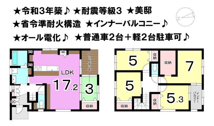 ■令和4年築美邸 ■耐震等級3 ■省令準耐火構造 ■4台駐車可 ■主要設備はパナソニック製