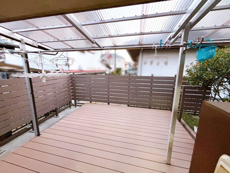 ウッドデッキ付きで、休日のくつろぎ時間やお子様の遊び場としても活躍します。