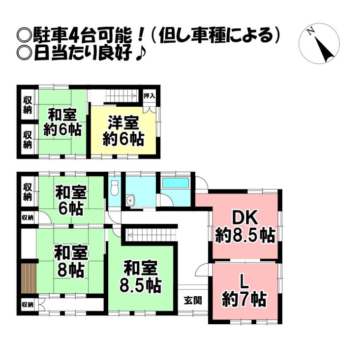 ◎駐車4台可能!(但し車種による)