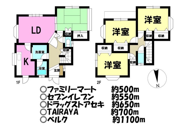 | 小学区 | 霞ヶ関東小学校 徒歩18分 (約1400m) | 中学区 | 霞ヶ関東中学校 徒歩18分 (約1400m) |