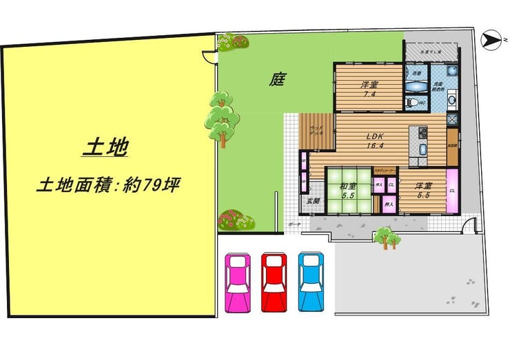 | 建物面積 | 86.13㎡ | 駐車場 | あり 普通:4台 |