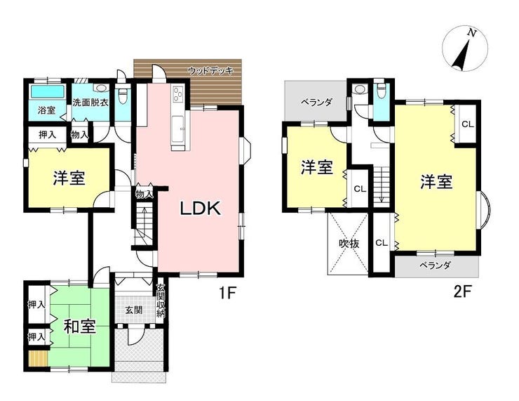 | 備考 | 令和7年 内外装大規模リフォーム済み! 壁クロスを全面的に交換(一部除く)ガスコンロ・給湯器・浴室・トイレを新品交換済み! LDKの見晴らしのいいウッドデッキがあります。 駐車場は2台分のカーポートあり! |
