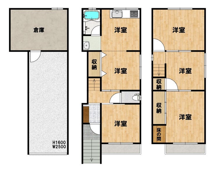 各階に個室を配置した5DKのプランは、ご家族の多い世帯や趣味の部屋を確保したい方に最適です。