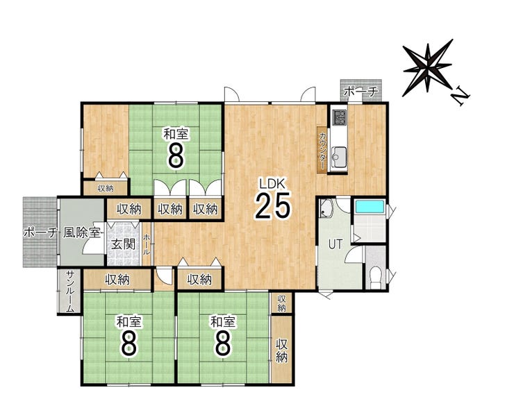◆平家建て3LDK◆物置付き◆事業用等多用途対応◆各居室8帖以上◆25帖のLDK