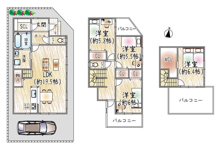 1月27日新着!! 築浅、白基調の3階建、角地物件 LDK約19.5帖