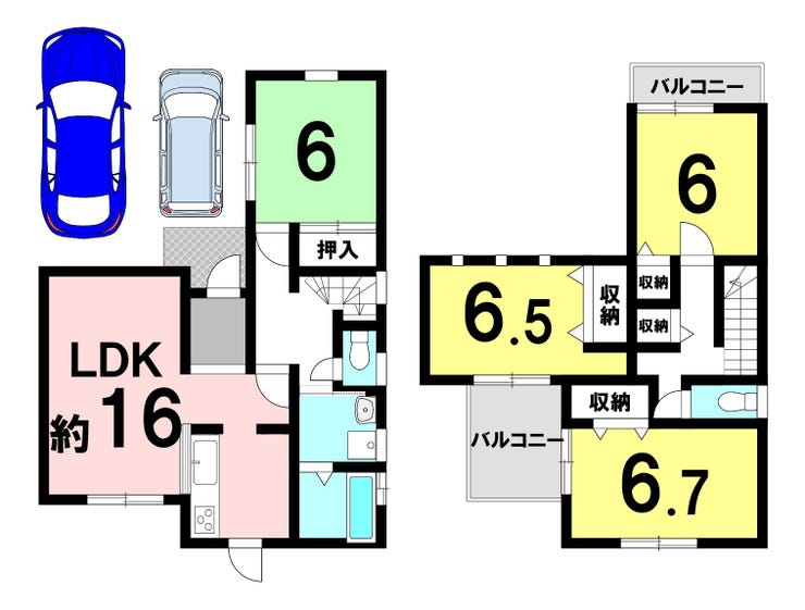 | 建物面積 | 97.8㎡ | 駐車場 | あり 普通:1台 軽:1台 |