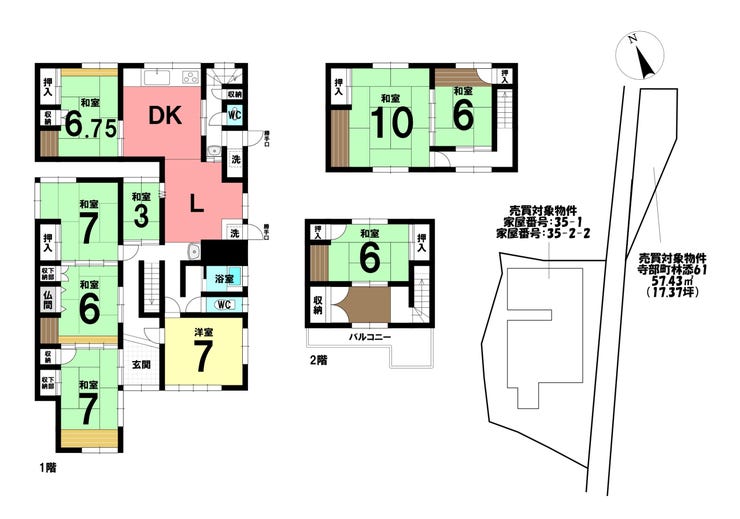 | 備考 | ※下記物件も売買対象物件となります。 ■家屋番号:35-2-2 居宅 鉄骨・木造亜鉛メッキ二階建て 1階37.26㎡ 2階37.26㎡ ■寺部町林添61 地目:畑 ・増築部分があり未登記ですが、引渡しまでに売主の負担にて表題変更登記を完了します。 ・契約不適合免責。現況渡しとなります。 ・売主による測量は行わず、買主負担となります。 ・物件西側に高低差があり、再建築の際に新たに擁壁を建築する必要がある場合は買主の負担となります。 ・東側に二項道路として建築基準法の道路と接道していますが、建築の際はセットバックが必要となります。 |