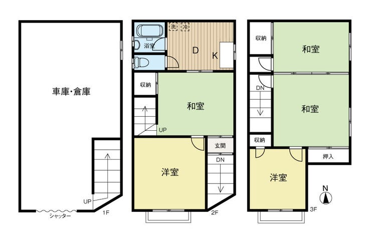 車庫付き3階建戸建が新規登場♪ 4DK、リフォームの土台にも適した物件♪
