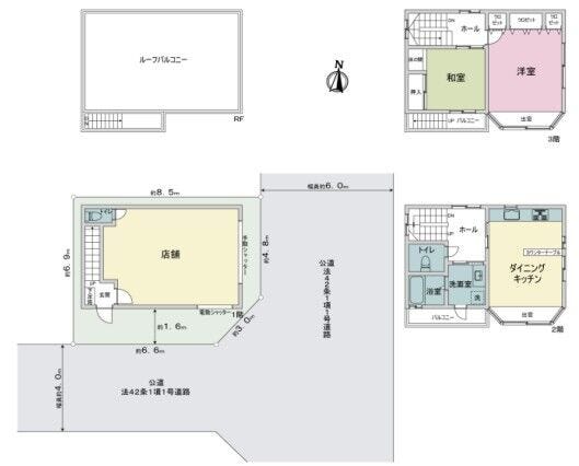 | 土地面積 | 公58㎡(17.54坪) | 接道 | 東側(公道)幅 約6.0m 南側(公道)幅 約4.0m |