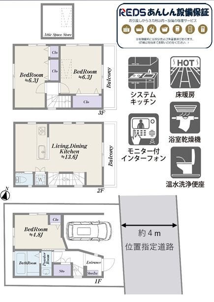| 土地面積 | 公45.66㎡(13.81坪) | 接道 | 東側(私道)幅 約4.0m(位置指定) |