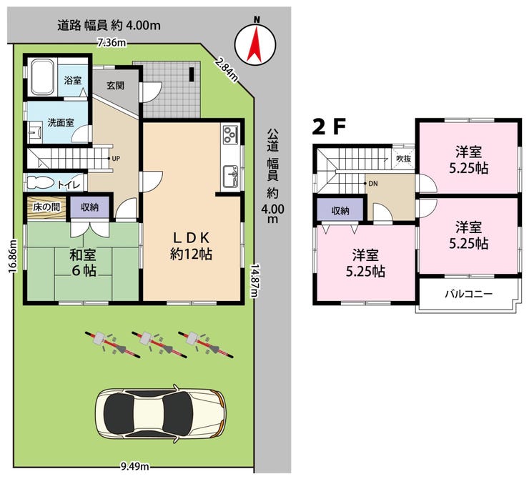 | 土地面積 | 公157.16㎡(47.54坪) | 接道 | 北側(公道)幅 約4.0m 東側(公道)幅 約4.0m |