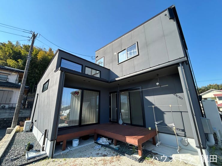 外には縁側のようなウッドデッキがあり、休日にはバーベキューや星空観賞も楽しめます。