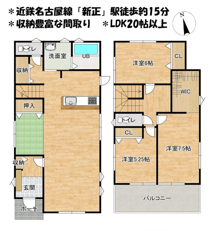 ■リビング階段■LDK20帖以上■駐車3台可■陽当り良好■収納豊富な間取り■全室2面採光