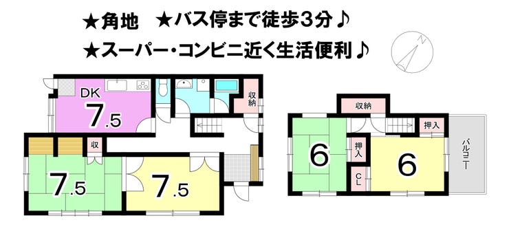 ■角地 ■バス停まで徒歩3分 ■スーパー・コンビニ近く生活便利