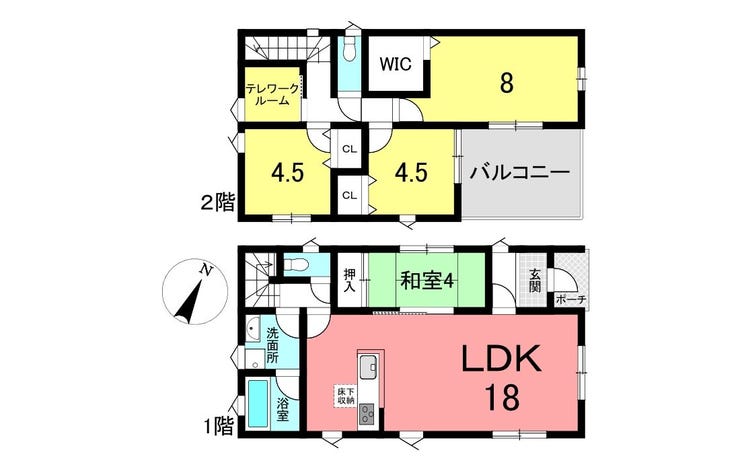 | 備考 | ※協定地あり:18.28㎡ ●駐車4台可(車種による) ●趣味や仕事場としてもつかえるテレワークルームあり! ●1階に和室あり ●LDK広々18帖 |