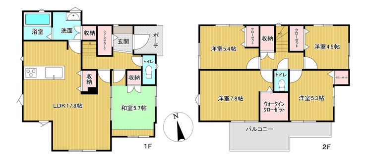 5LDKの木造2階建て♪(LDK17.8帖・1階1部屋・2階4部屋)