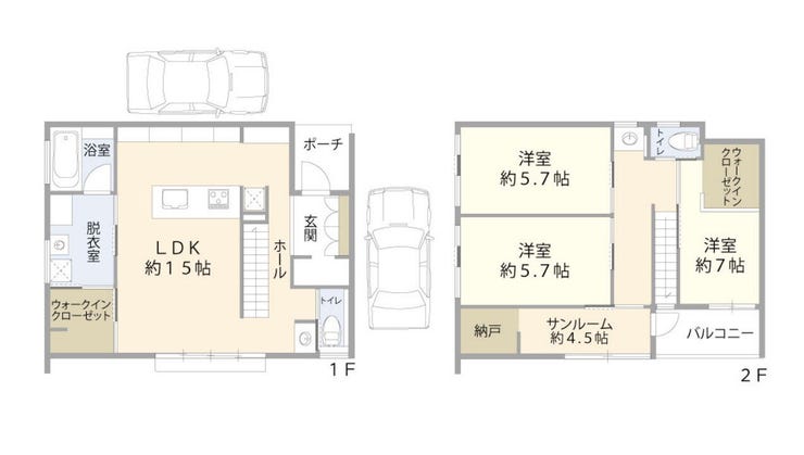 駐車場2台!サンルーム約4.5帖つき