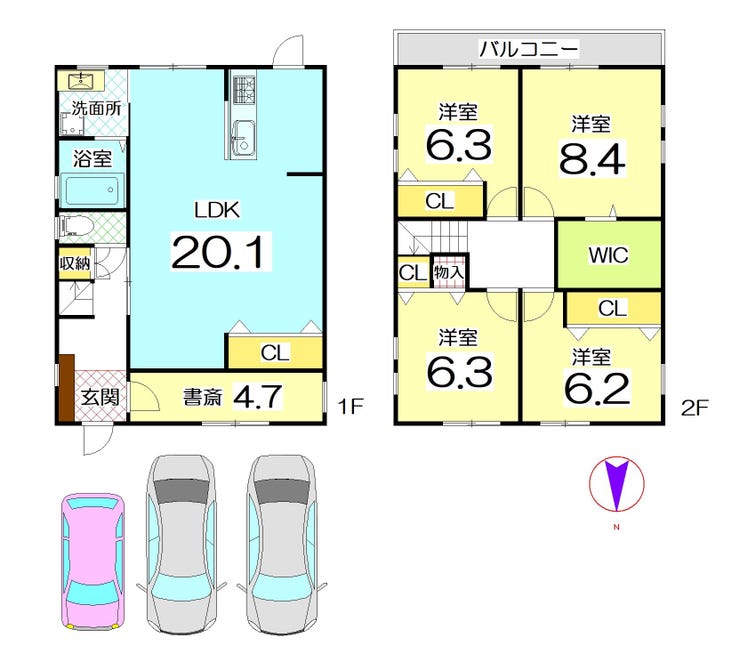| 建物面積 | 123.5㎡ | 駐車場 | あり 普通:2台 軽:1台 |