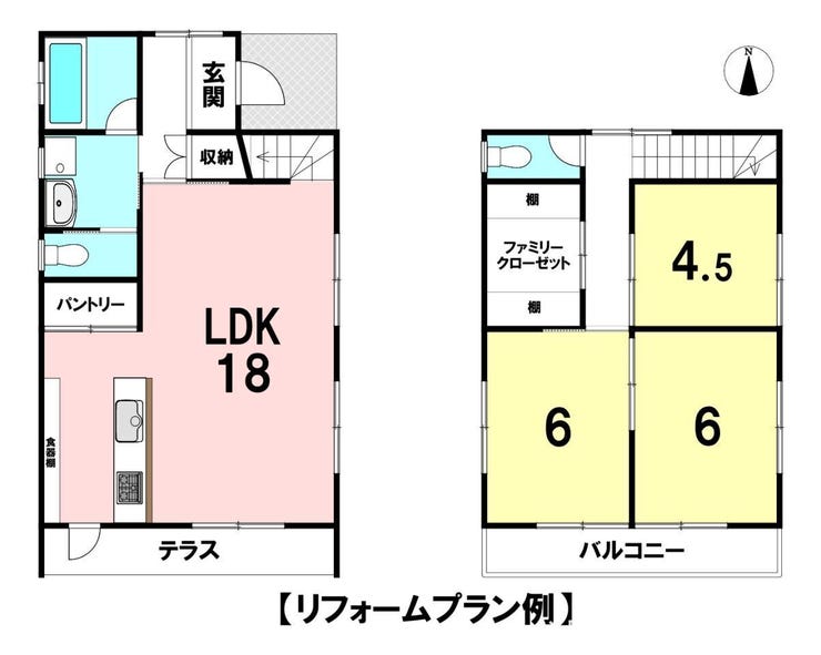 18帖の広々LDKには便利なパントリー、2階には大容量のファミリークローゼットがあり収納力も魅力です。