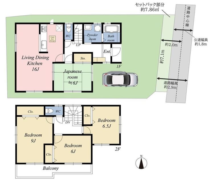 | 土地面積 | 公110.83㎡(33.52坪) | 接道 | 東側幅 約2.9m |