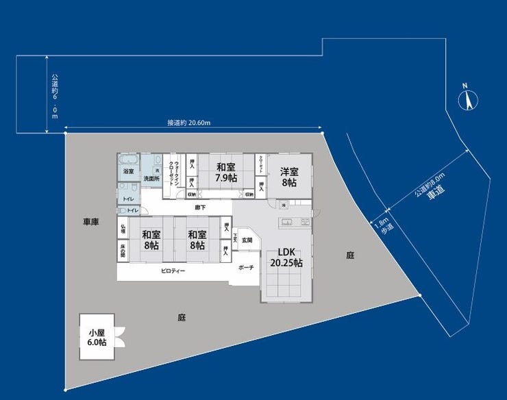 | 土地面積 | 公416.96㎡(126.13坪) | 接道 | 北側(公道)幅 約6.0m 間口 約20.60m 東側(公道)幅 約9.8m |