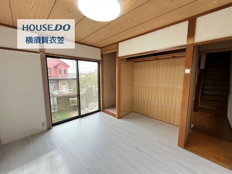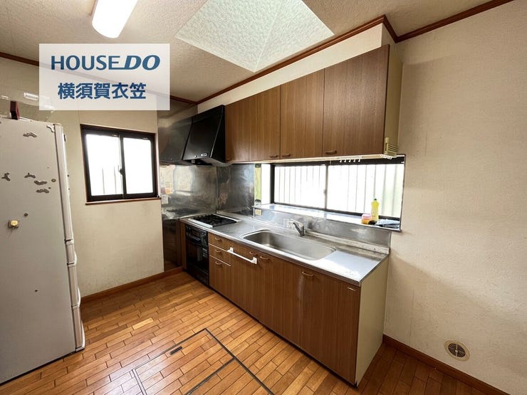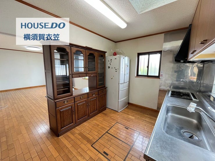 土地約100坪超、建物約127㎡のゆとりある4SLDK。京急久里浜線「YRP野比」駅徒歩18分に加え、「京急久里浜」駅へはバス13分「自治会館前」停歩1分、「YRP野比」駅へはバス16分「自治会館前」停歩1分で利用可能です。カースペース2台可(うち1台地下車庫・車種による)、無垢材フローリング、明るさを採り入れる天窓付きキッチン、甘柿や梅などを楽しめる庭が魅力。2階からは富士山を望みます(季節・天候による)。