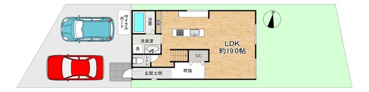 ・玄関土間・サイクルポート付き。 自転車やアウトドア用品の収納にも便利です