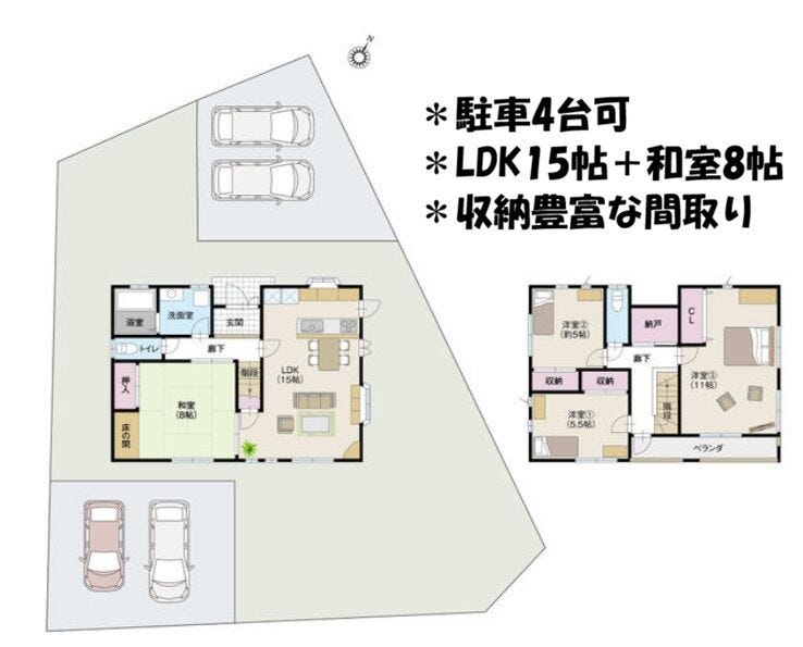 ■駐車4台可■LDK18帖+和室8帖■収納豊富な間取り■小学校徒歩約10分■スーパー徒歩15分圏内
