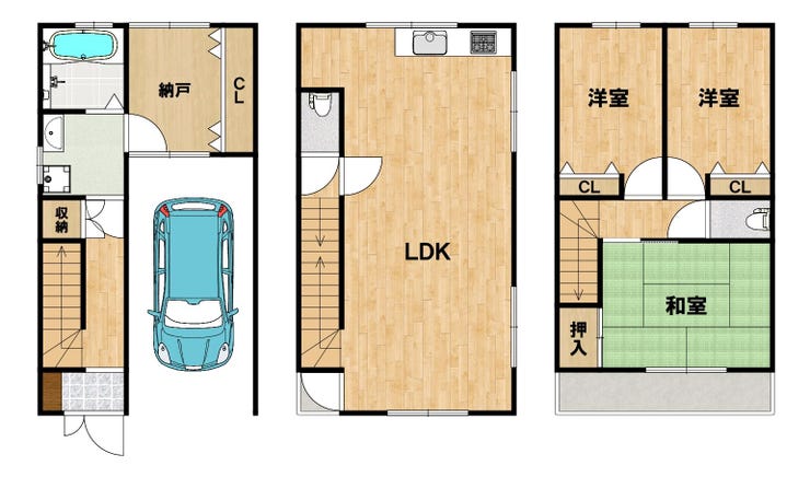 1995年築の木造3階建て、延床面積99.67平米のゆったりとした住まいです。2階に広々としたLDKを配置しており、家族が自然と集まる明るい設計になっています。現在は空家のため、即時の引渡しもご相談いただけます。リフォームしたての室内と、使い勝手の良いガレージをぜひ現地でお確かめください!