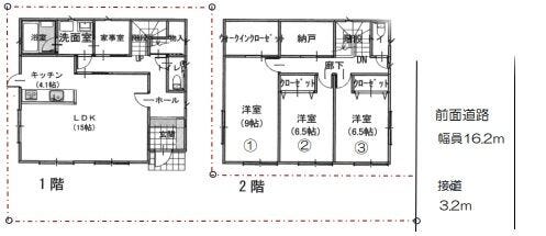 | 土地面積 | 実165.66㎡(50.11坪) | 接道 | 北東側(公道)幅 約16.2m 間口 約3.20m |