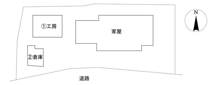 | 備考 | 付属建物①『作業所(工房)』57.96㎡(約17.53坪)木造瓦葺平屋建 平成4年5月30日新築 付属建物②『車庫(倉庫)』26.50㎡(約8.01坪)木造瓦葺平屋建 平成4年5月30日新築 上水:前面50mm、引込20mm、メーター13mm 下水:母屋接続済、工房現況汲取(工房トイレを公共下水に接続する際、追加分担金20万円が必要です) ガス:前面なし、引込なし 埋蔵文化財包蔵地ではない 電気:九州電力 ハザードなし 道路:南側 市道137本谷線(1項1号) |