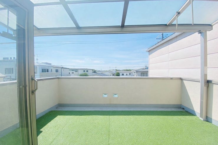 屋根付きのゆとりあるベランダや駐車スペースなどファミリー層におすすめのお家です!