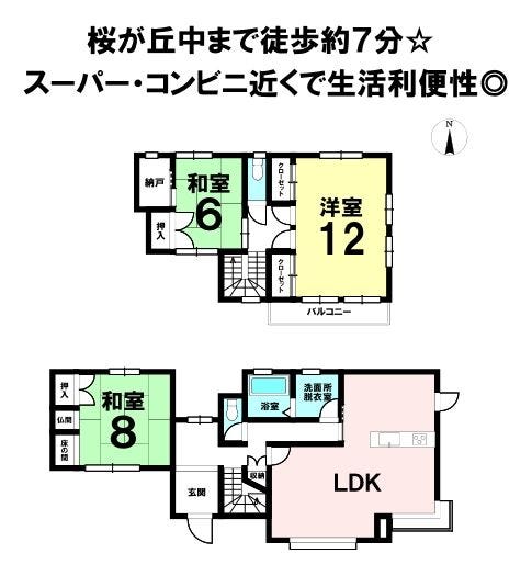 | 小学区 | 桜木小学校 徒歩19分 (約1500m) | 中学区 | 桜が丘中学校 徒歩7分 (約500m) |
