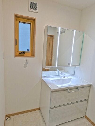 ・洗面台はツインラインLED仕様で顔まわりをしっかり照らしてくれて身支度しやすい!