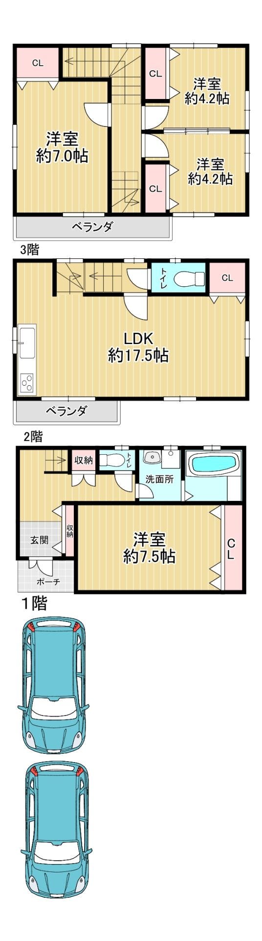広々LDK17.5帖で家族団らん♪4LDKで部屋数も確保。駐車2台可(車種制限有)♪