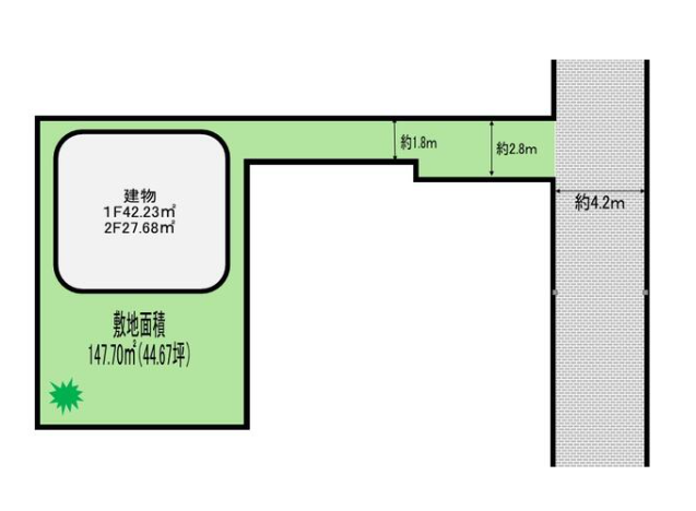 | 土地面積 | 公147.7㎡(44.67坪) | 接道 | 東側(公道)幅 約4.2m 間口 約2.80m |