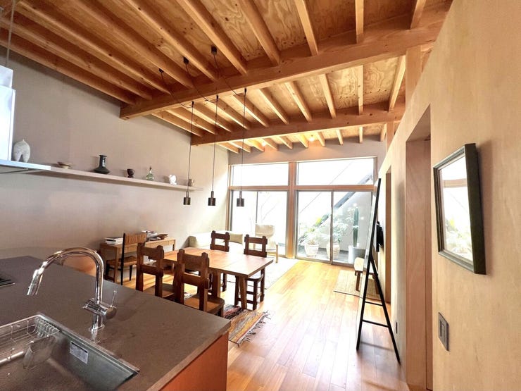 左官外壁と無垢材を活かした内装が、量産住宅とは一線を画す質感を創出。設計士とデザイナーが細部まで拘った唯一無二の築浅邸宅。