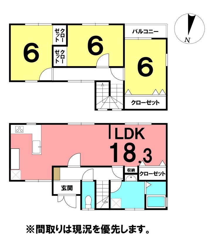 18帖の広いLDK、全居室収納付き。