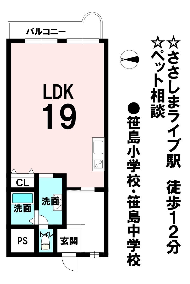 | 小学区 | 笹島小学校 徒歩17分 (約1300m) | 中学区 | 笹島中学校 徒歩17分 (約1300m) |