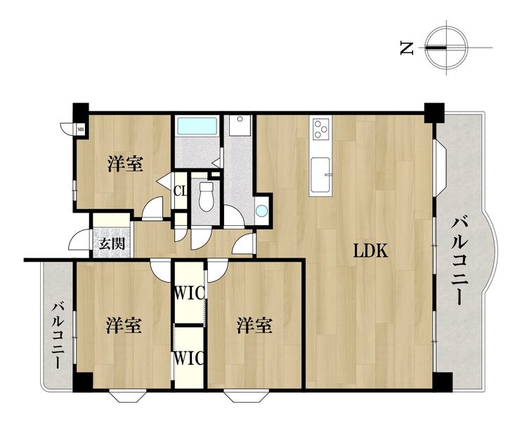 - 2面バルコニー