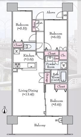 | 主要採光 | 南向 | バルコニー | 南向12.80㎡ |